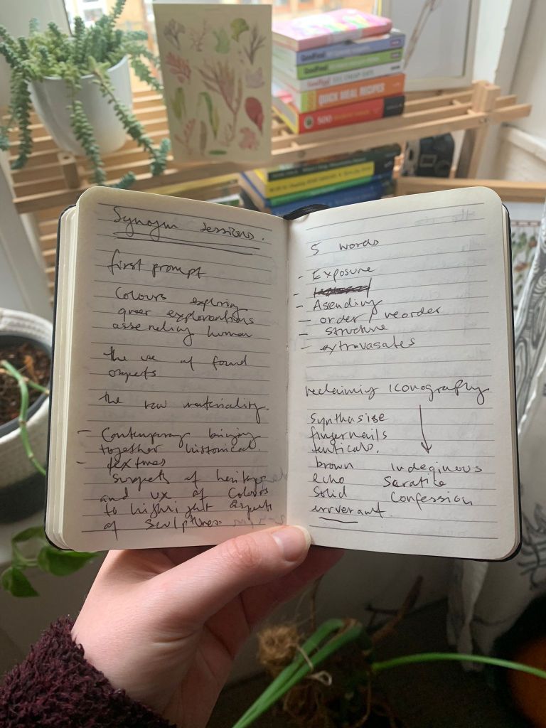 With a very successful first [synonym] session we wanted to use this space to share the amazing creativity that came out of the writing session. To kick-off this event we decided to use Tramway, Glasgow, where we responded to Ramesh Mario Nithiyendran’s exhibition ‘Idols of Mud and Water’. Analysis, evaluation and critique of Nithiyendran’s artwork was encouraged in the form of prompts for our [synners] who highlighted themes of materiality, feminism, queer identity, and spirituality through their writing.