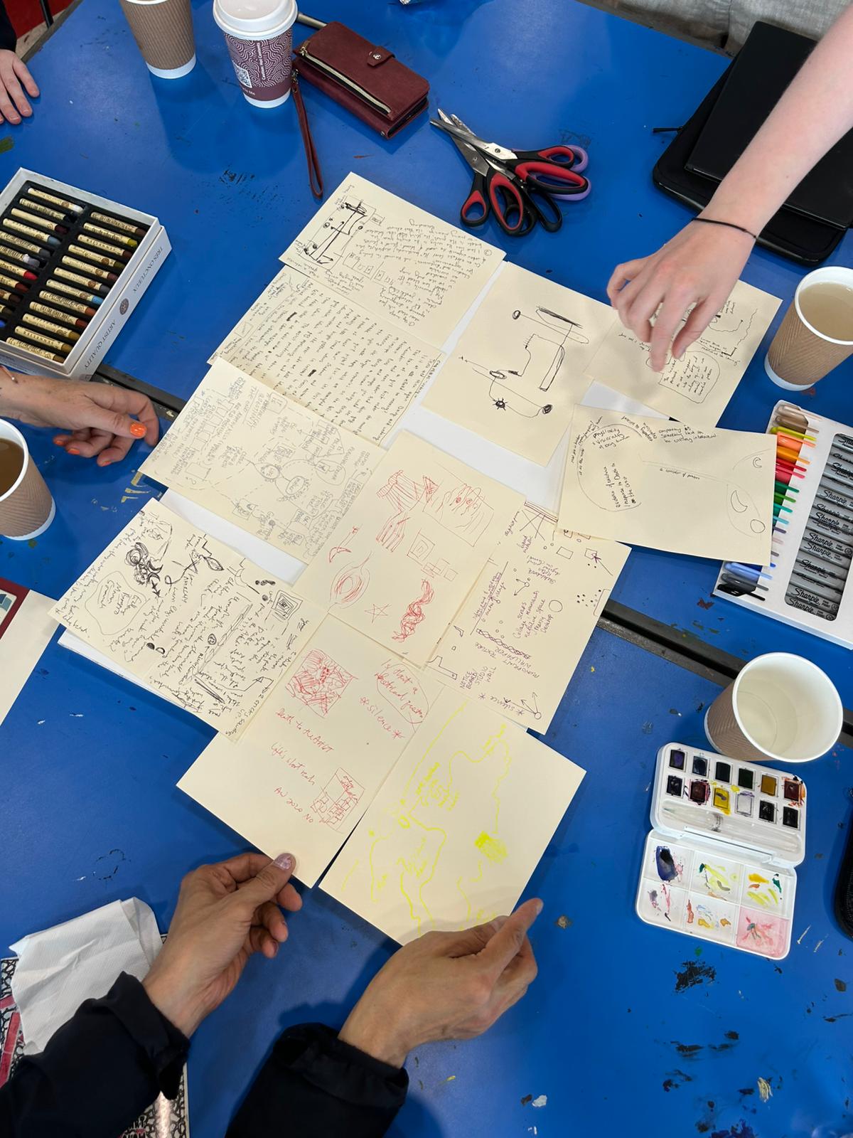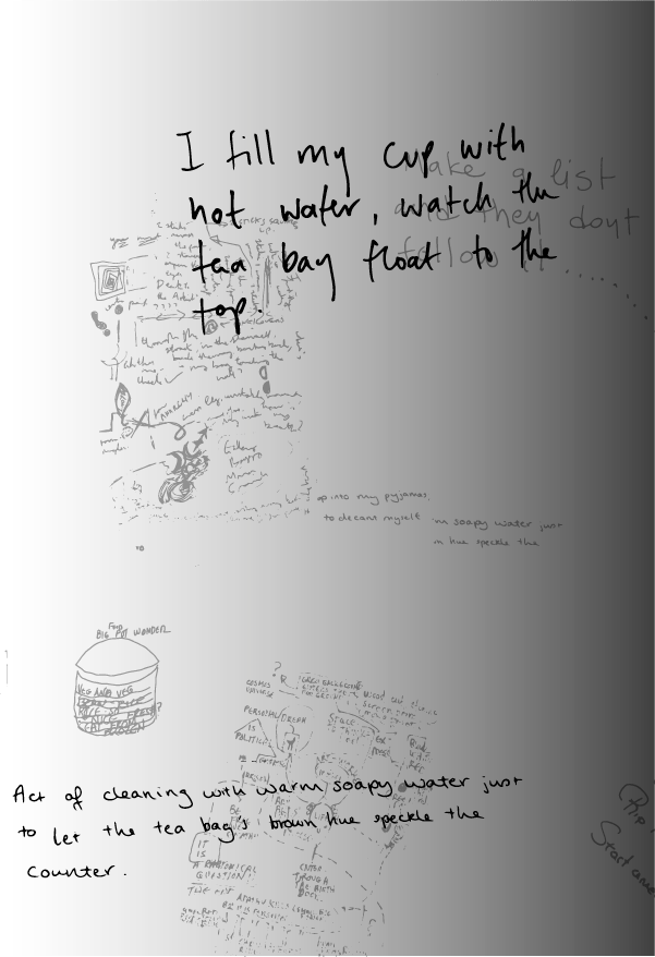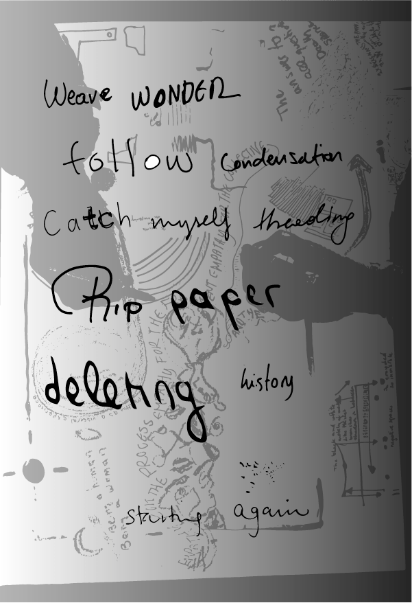 Through these explorations we created maps to document our experiences of the room – our thoughts, movements and emotional response. It was with these individual drawings and writings that we began to piece them together as one big ‘score’, together composing a piece that would enable a collaborative creation. Collaging to create a ‘work in progress’ process of doing and un-doing.