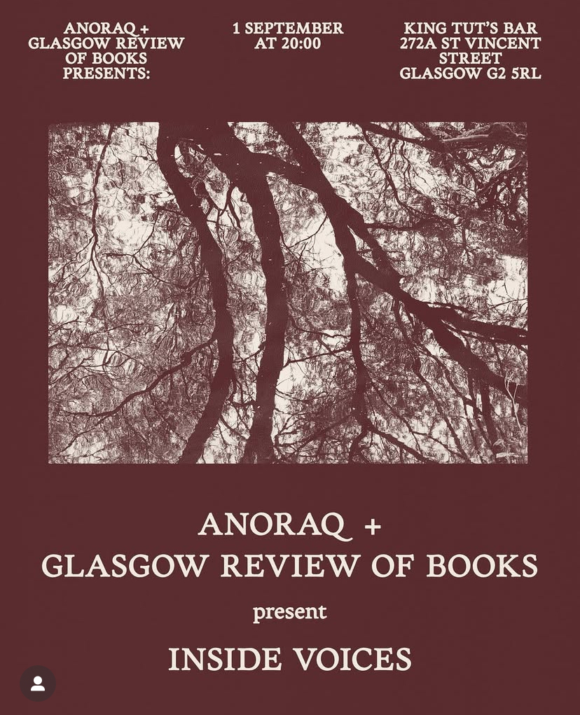 We find ourselves visiting Inside Voices, a collaborative poetry night with Anoraq and Glasgow Review of Books, housed in King Tuts. On this night we hone in on poet and writer Pepita Mwanga who shared her words alongside other performers; all accompanied by live impromptu music.